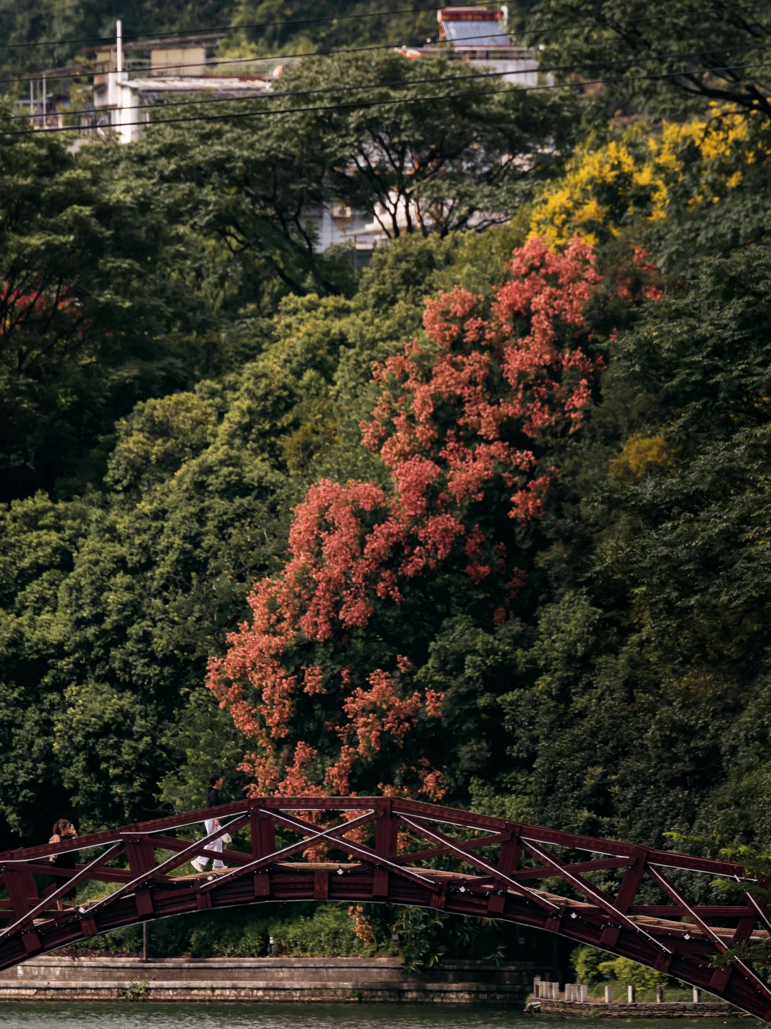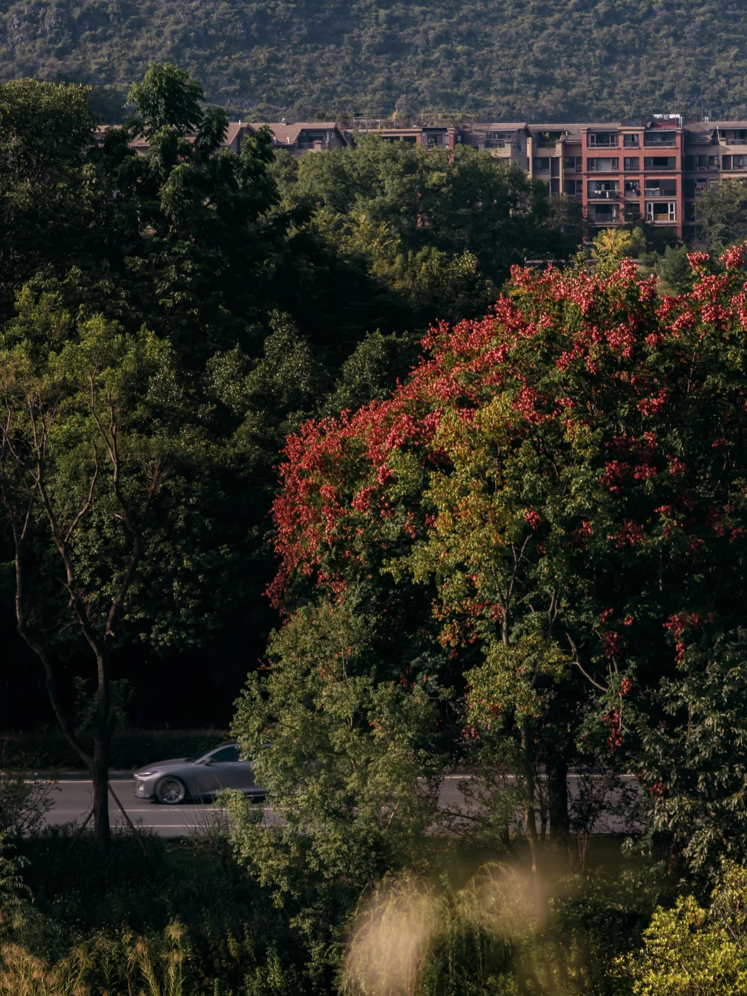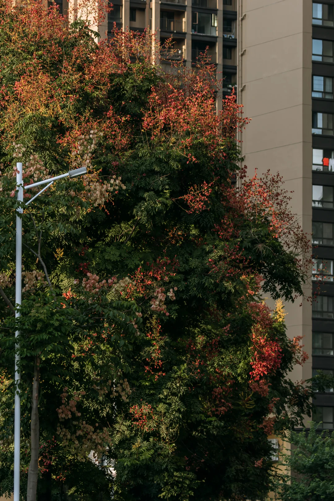 一抹金黄一抹红,秋日的桂林,在栾树的点缀下,宛如打翻的调色盘,绚烂多姿。